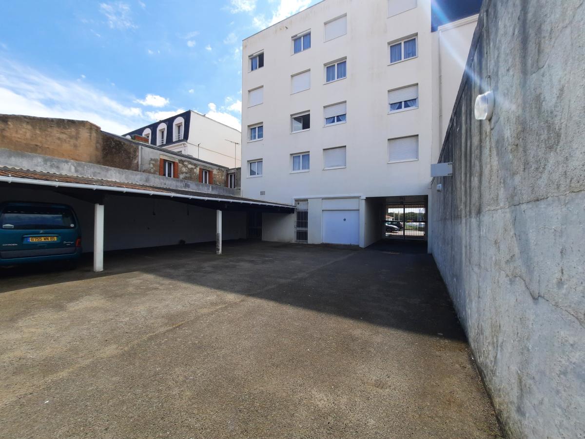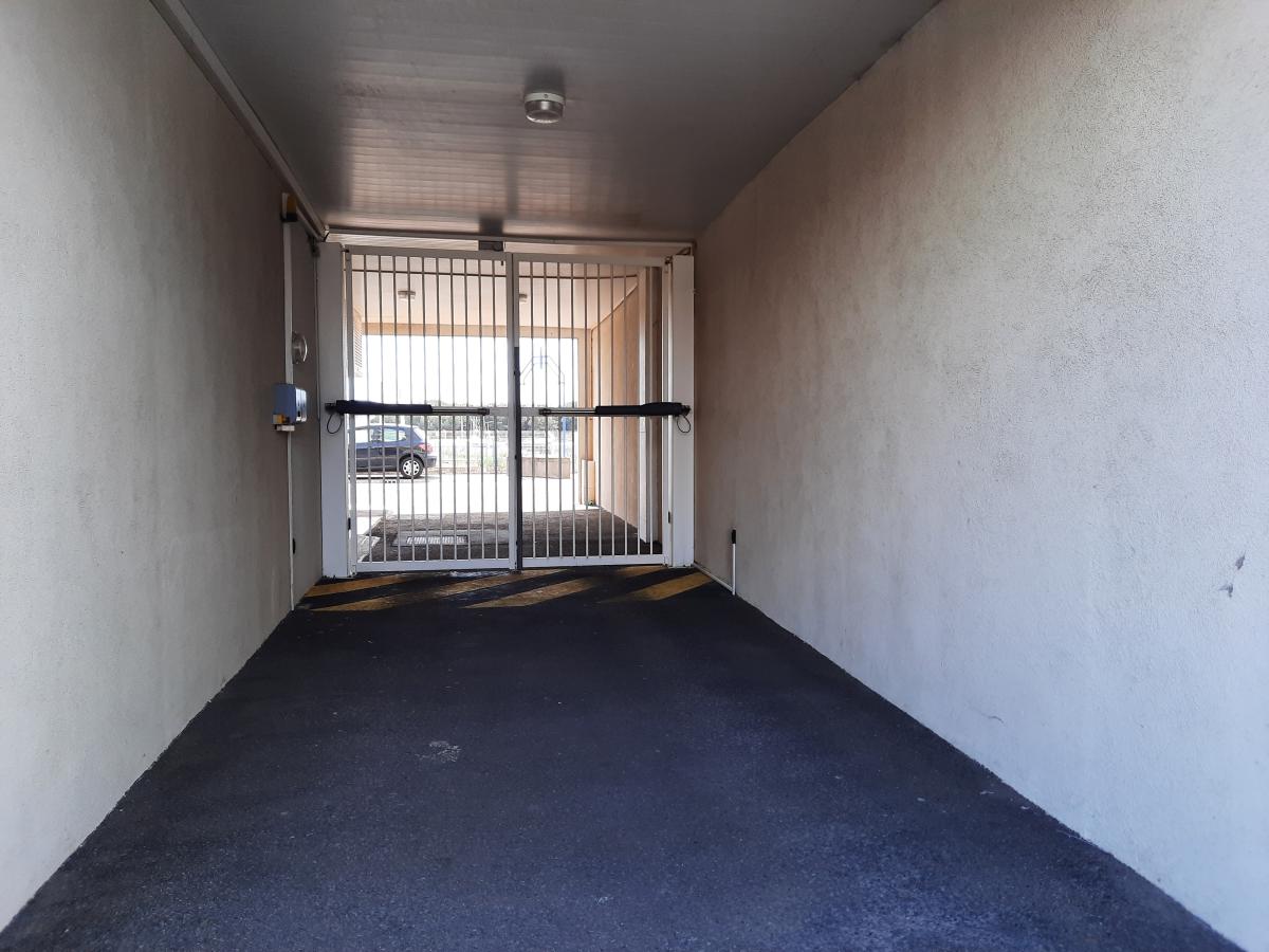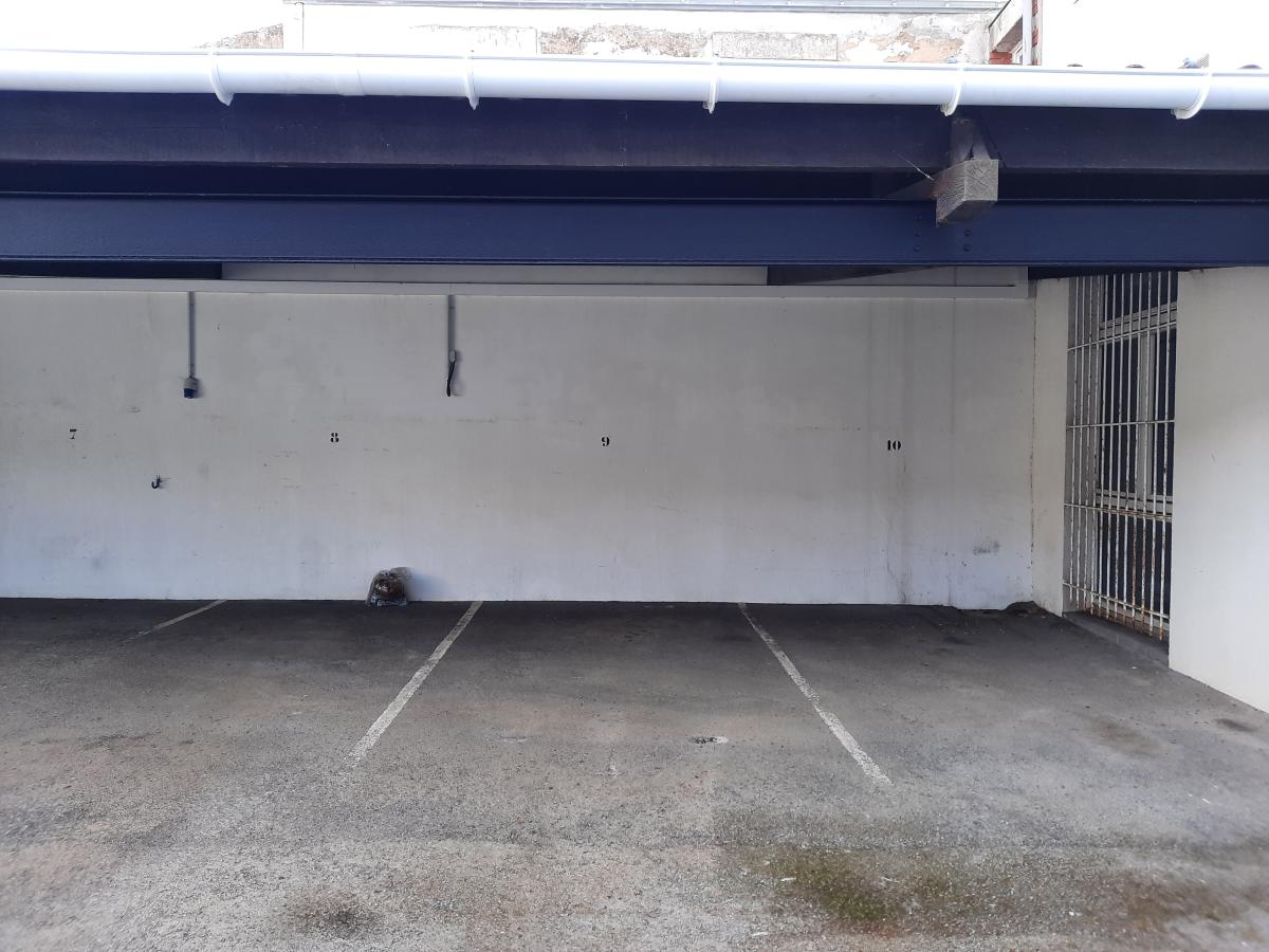 Une place de parking couverte dans une cour sécurisée.
