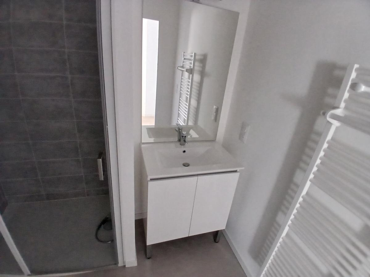 Dans une résidence avec piscine et parc boisé, appartement NEUF de type 2 situé au 1er étage comprenant: un hall d’entrée / dégagement, une pièce de vie avec placard et coin cuisine, une salle d’eau, un WC séparé, une chambre.